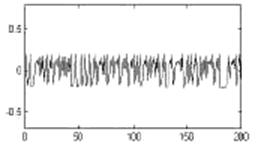 為了便于表述,稱式(4)為變形Losgistic映射。利用變形Losgistic映射得到的混沌序列,其取值圍由參數(shù)a控制,且均值為零。當(dāng)a=0.4時得到的在(-0.2,0.2)內(nèi)取值的混沌序列如圖1c所示。
