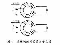 對開關(guān)電源二根進(jìn)線而言,存在共模干擾(二根線上受干擾信號相對參考點(diǎn)大小、方向相同)和差模干擾(二根線上受干擾信號相對參考點(diǎn)大小相等、方向相反)。共模扼流圈如圖4所示。