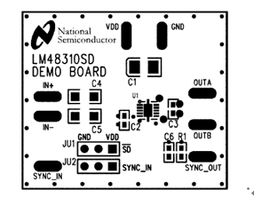圖4.LM48310示范板的絲網(wǎng)印刷圖。