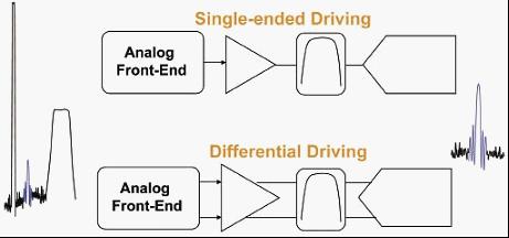 我們說差分信號(hào)鏈相對(duì)單端信號(hào)來講有很多優(yōu)勢(shì)。由于是差模信號(hào),輸出的是兩個(gè)差分信號(hào),實(shí)際上輸出的差模信號(hào)幅度相對(duì)擴(kuò)大了一倍,換一個(gè)角度來講,在同等輸出范圍條件下,工作電壓會(huì)更低。這樣,在要求低諧波失真的應(yīng)用中,就可以保證足夠的幅值余量。差分系統(tǒng)自身類似奇函數(shù)的特性可以消除系統(tǒng)中的偶次諧波項(xiàng),也就是說2次、4次、6次諧波等,在這些頻點(diǎn)上的諧波相對(duì)奇次諧波會(huì)很小甚至看不到。最后,由于信號(hào)的返回路徑不再是地平面,信號(hào)受地平面或是電源平面影響不是那么敏感,從而減少了噪聲的耦合引入,同時(shí)實(shí)現(xiàn)更好的抗電磁干擾效果。