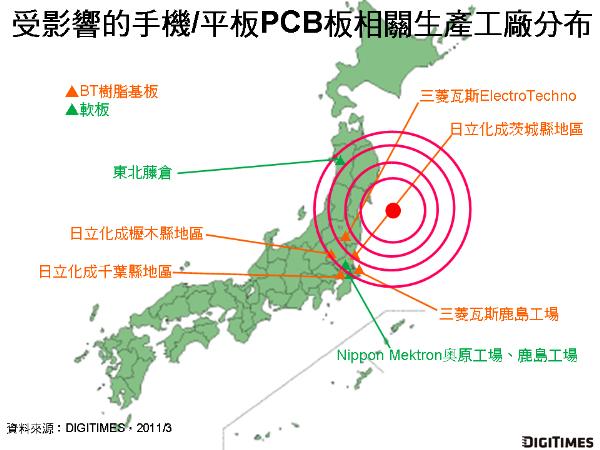 在手機/平板用PCB、IC載板材料BT樹脂等相關(guān)零組件方面,包含三菱瓦斯化學、日立化成、藤倉、Nippon Mektron等日廠旗下工廠受地震影響作業(yè)中斷,停止生產(chǎn)。