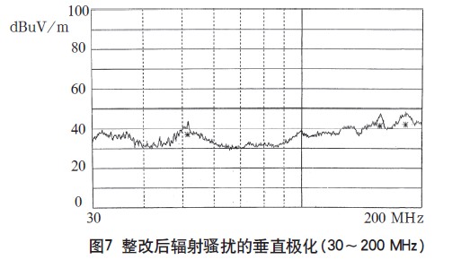 由測試結(jié)果可以看出,通過電磁兼容設(shè)計(jì)在傳導(dǎo)騷擾抑制方面取得了良好效果,在高頻段輻射騷擾的設(shè)計(jì)也達(dá)到了預(yù)期效果,下面還需對在30~200MHz頻段范圍內(nèi)的輻射騷擾進(jìn)行改進(jìn)設(shè)計(jì)。
