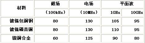 表12 鈹銅簧片的屏蔽效能dB[page]