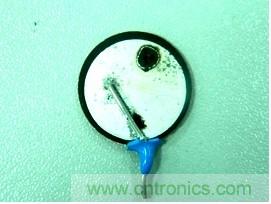 這種壓敏電阻通過擊穿點進行電流泄放,在泄流點會形成大量的熱量,這種熱量最終會導致壓敏電阻燒穿(見下圖)。