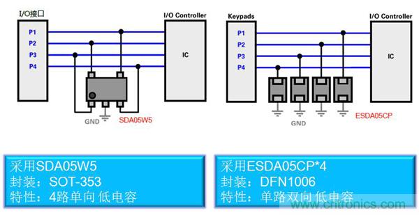對于普通的IO口的靜電防護,因為其速率較低,采用普通的TVS器件即可滿足8KV的防護需求。