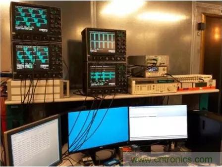 圖2:在EMC干擾室外用于抗干擾數(shù)據(jù)動態(tài)分析的示波器陣列