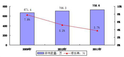 圖2 2009-2011年中國便攜式電子學習產(chǎn)品市場銷售量及其發(fā)展速度預測