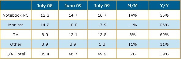 Source: DisplaySearch August 2009 Monthly TFT LCD Shipment Database