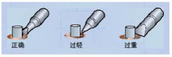 選擇具備足夠熱傳遞能力的焊接頭。針尖頭不可用于所有應用中,一些情況下諸如鑿型頭能最佳地傳遞足夠的熱量至被焊接部件。正確的焊接頭選擇標準范例請見下圖表。