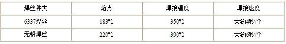 - 有鉛和無鉛焊接在焊絲種類、熔點(diǎn)、焊接溫度、焊接速度之間的區(qū)別