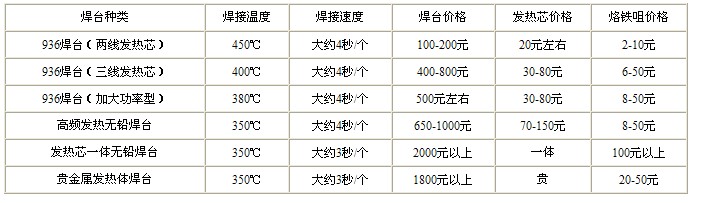 - 根據(jù)焊接的產(chǎn)品質(zhì)量和工作效率及發(fā)熱芯、烙鐵頭(烙鐵咀)的價格