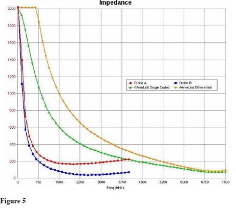 差分探頭具有固有的較低負(fù)載,現(xiàn)在的問題是增加到非常高的帶寬差分放大器(這里是7.5GHz)已被解決,這么一個(gè)探頭的所有的高頻測量是最好的。WaveLink系列探頭在這些任何已有的高頻探頭中具有最低的負(fù)載,提供了測試信號的最低失真。