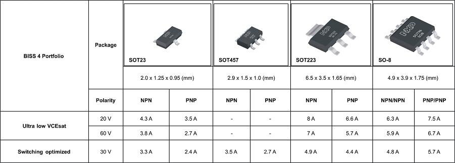 通過推出BISS(突破性小信號)晶體管系列,恩智浦半導(dǎo)體取得了市場領(lǐng)導(dǎo)地位。第四代BISS晶體管(BISS 4,表1)的全新架構(gòu)是SMD中功率雙極晶體管技術(shù)發(fā)展的里程碑,有力拓寬了雙極晶體管的應(yīng)用領(lǐng)域。
