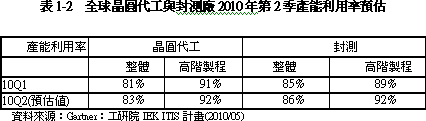2. 臺灣半導體各次產(chǎn)業(yè)2010Q2展望