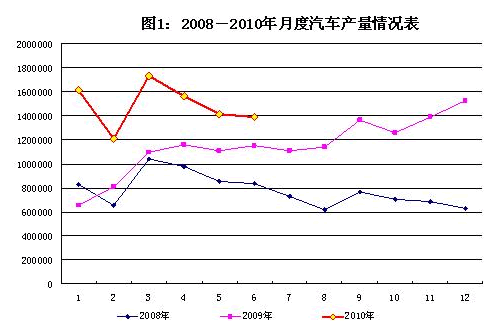 2010年上半年,汽車產(chǎn)銷市場增速自3月以來呈逐月回落態(tài)勢,但總體保持較高增長勢頭;汽車行業(yè)整體經(jīng)濟效益保持良好的發(fā)展態(tài)勢。