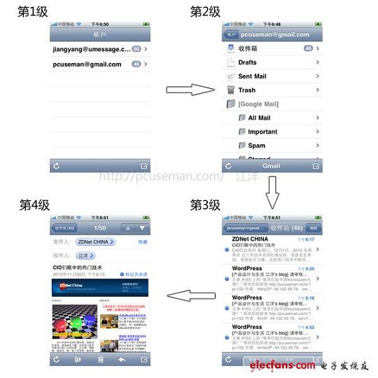 這類應(yīng)用可以幫助用戶快速完成一個任務(wù),注重內(nèi)容的組織邏輯功能和信息架構(gòu)的展現(xiàn),以方便用戶快速高效的使用,最終完成任務(wù)。此類應(yīng)用一般包含大量的列表及每個列表中的任務(wù)功能。最典型的就是系統(tǒng)自帶的“Mail”應(yīng)用,這是一個非常典型的高效型應(yīng)用。