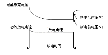 蓄電池在線內(nèi)阻監(jiān)測,通過電池向放電模塊瞬時放電,測量電池斷電瞬間的電壓差,計算電池內(nèi)阻(R內(nèi)阻=△V/I),內(nèi)阻測試原理如圖3。由于在線監(jiān)測中出現(xiàn)的端電壓監(jiān)測誤差、放電過程電流波動、斷電前后電壓補捉測量技術(shù),以及在線連接線電量衰檢等問題,內(nèi)阻在線監(jiān)測精度不高。目前,在國內(nèi)美國ABLER便攜式內(nèi)阻測試儀應(yīng)用較多,它的在線式內(nèi)阻測試系統(tǒng)測試精度與便攜式相比稍差,但與目前使用的其他產(chǎn)品相比還是要好些。