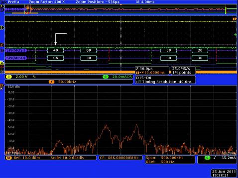 下面我們以一個13.56MHz的RFID讀寫器系統(tǒng)為例,介紹MDO4000的跨域調(diào)試應用。
