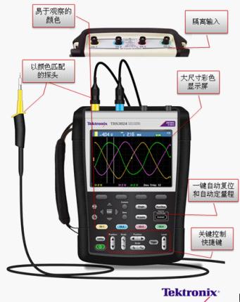 圖1:適用于實(shí)驗(yàn)室和現(xiàn)場環(huán)境的電池供電手持式示波器THS3000系列。