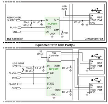 USB負(fù)載開(kāi)關(guān)提供用于USB主機(jī)的過(guò)流保護(hù)(OCP)。安森美半導(dǎo)體的相關(guān)產(chǎn)品有NCP380、NCP382單、雙通道負(fù)載開(kāi)關(guān)。這些器件可防止采用USB的設(shè)備端口因短路或過(guò)載事件而損壞,其短路檢測(cè)時(shí)間僅為1微秒。這些器件具有精確的電流限制閾值、固定或可調(diào)電流限制(500 mA至2.1 A),支持在電流平板電腦充電,獲得了UL和CB認(rèn)證。