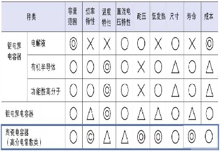 表1 各種電容器的特性比較