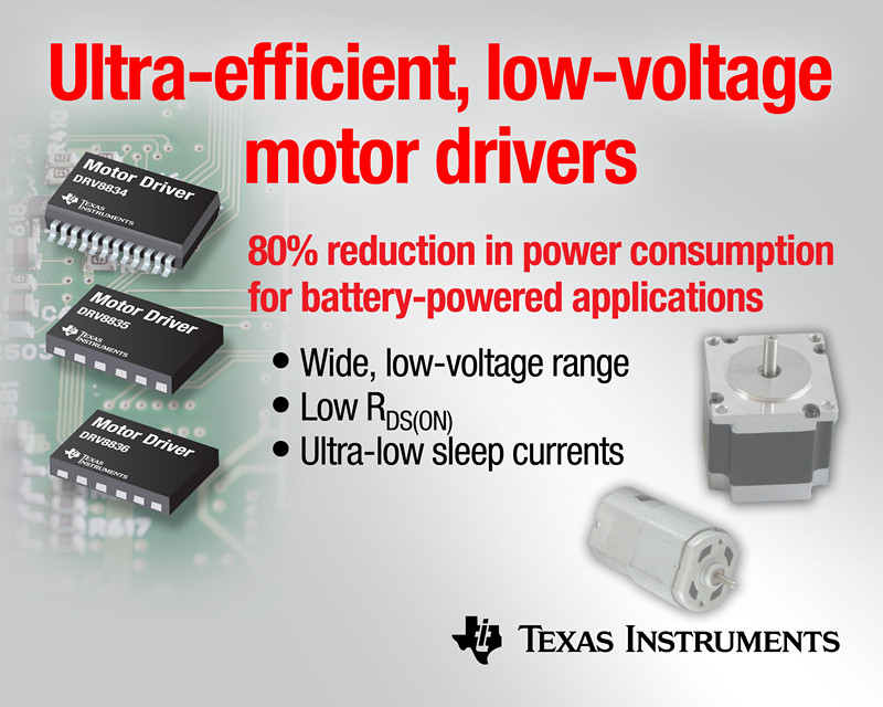 日前,德州儀器 (TI) 宣布推出 3 款面向有刷 DC 及步進(jìn)電機(jī)的最新低電壓器件,進(jìn)一步壯大其不斷豐富的高集成 DRV8x 電機(jī)驅(qū)動(dòng)器產(chǎn)品陣營(yíng)。該 DRV8834、DRV8835 以及 DRV8836 電機(jī)驅(qū)動(dòng)器支持寬泛的低電壓工作范圍、低 RDS(ON) 與超低睡眠狀態(tài)電流,與性能最接近的競(jìng)爭(zhēng)產(chǎn)品相比,功耗銳降達(dá) 80%,可延長(zhǎng)電池使用壽命,改進(jìn)散熱性能,提高系統(tǒng)可靠性。此外,這些高集成器件還采用超小型封裝,與分立式解決方案相比,可將板級(jí)空間銳減達(dá) 95%。
