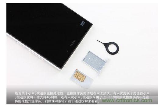 聯(lián)通版小米3在上市之后接連遭遇了更換攝像頭和處理器的風波當中,有人說更換了處理器的小米3就不能支持4G網絡了,還有人說小米3用的是上一代背照式攝像頭而不是宣傳的堆棧式攝像頭,到底這些說法正確嗎?我們通過拆解來看一看吧。