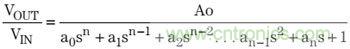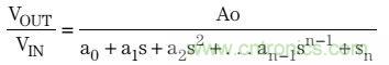 巴特沃茲濾波器傳輸函數(shù)包括所有極點(diǎn),并且沒(méi)有零,其表達(dá)式如下:
