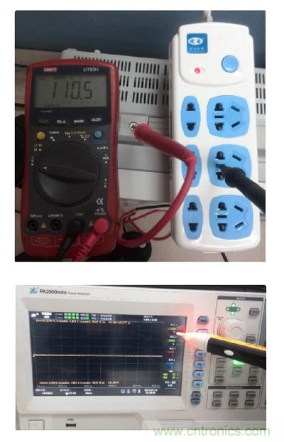 故意減掉PA2000mini功率分析儀的地線,這時候儀器處于接地不良的狀態(tài),機(jī)殼會帶110V電壓,會發(fā)生觸電危險!
