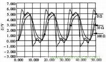 從圖中看出,信號線加長后,由于傳輸線的等效電阻、電感和電容增大,傳輸線效應(yīng)明顯加強,波形出現(xiàn)振蕩現(xiàn)象。因此在高頻PCB布線時除了要接匹配電阻外,還應(yīng)盡量縮短傳輸線的長度,保持信號完整性。
