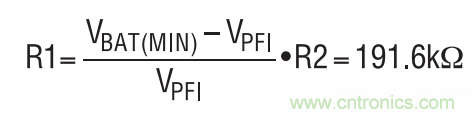 設(shè)計從設(shè)定 PFI 觸發(fā)電平開始。R2 被設(shè)定為 121k, R1 的阻值應(yīng)把 PFI 引腳上的 PFI 觸發(fā)電平 (VPFI) 設(shè)定至1.2V,其計算公式如下: