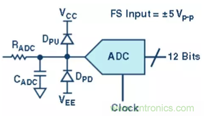 電容提供了一個簡單的低通抗混疊濾波器 (AAF),用以衰減目標頻帶之外的信號和噪聲。AAF 的設(shè)計在很大程度上取決于系統(tǒng)的設(shè)計和應(yīng)用。最后,上拉和下拉二極管可增添輸入保護功能,可防止有可能被施加到轉(zhuǎn)換器輸入端的極端過載信號導致的任何故障狀況。