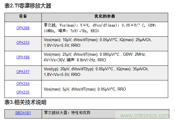 下面的表2重點(diǎn)介紹了TI的一些零漂移放大器。有關(guān)完整列表,請(qǐng)點(diǎn)擊查看德州儀器的參數(shù)搜索工具結(jié)果。