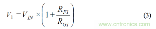 另外,輸入放大器的偏置電流會(huì)導(dǎo)致因增益而異的失調(diào)。由于輸入放大器和輸出緩沖器采用同一芯片,因此可以利用其偏置電流的相對(duì)匹配性來消除上述失調(diào)變化。將一個(gè)大小等于 RF2與 RF1之差值的電阻與開關(guān) S2A 串聯(lián),可以減少失調(diào)-電壓差。下面的推導(dǎo)公式說明,在 V1 采樣可產(chǎn)生所需的信號(hào)增益,且無增益誤差。RS表示開關(guān)電阻。V2 可以利用同樣的方法導(dǎo)出。
