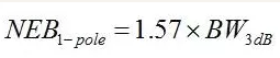 對(duì)于單極點(diǎn)低通濾波器,它是–3dB帶寬的1.57倍,寫(xiě)成公式就是: