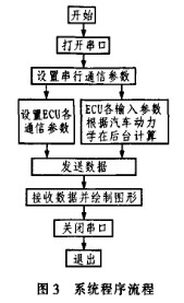 計算機(jī)通過串行口向發(fā)動機(jī)ECU發(fā)送數(shù)據(jù),采集到ECU噴油和點(diǎn)火輸出信號,通過串行口將這些數(shù)據(jù)傳給計算機(jī)。計算機(jī)接收數(shù)據(jù)并繪制圖形。