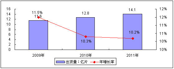 圖2 2009-2011年中國中小尺寸液晶面板出貨量規(guī)模預(yù)測