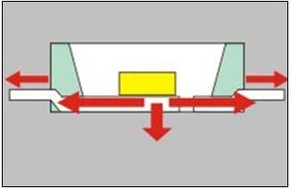 傳統(tǒng)的貼片產(chǎn)品熱傳導(dǎo)路線及方式如下圖2: