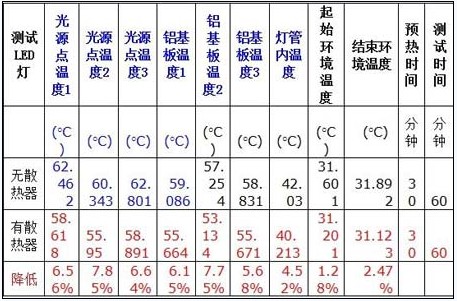 熱傳導(dǎo)的途徑有三種,對流、傳導(dǎo)及輻射。在封閉的環(huán)境中,對流及傳導(dǎo)實現(xiàn)的可能較小,而通過輻射將熱散發(fā)出來,是日光燈管考慮的重點。以下是我們做的LED日光燈管的測試數(shù)據(jù),在LED銀腳焊點外測出的溫度才58度。