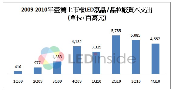2009-2010年臺灣上市柜LED磊晶、晶粒廠資本支出 (單位: 百萬元)