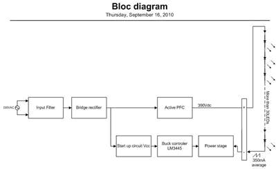 LED正越來越廣泛應(yīng)用于照明改造、工業(yè)照明、商業(yè)照明、街道照明以及其它眾多領(lǐng)域,其效率以及使用壽命已經(jīng)得以證實(shí),為提供更高可靠性,它需要一個(gè)良好的電源以滿足其需求。我們的第一個(gè)方案是由兩級(jí)構(gòu)成:一個(gè)前端PFC與一個(gè)LM3445 LED驅(qū)動(dòng)器。