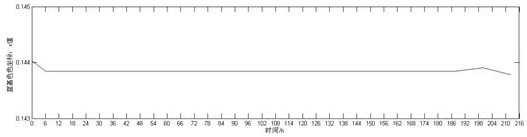 對RGB三基色的色坐標數(shù)據(jù)隨時間變化情況進行分析,分別得到圖2、圖3和圖4。