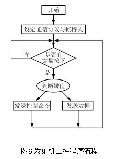 發(fā)射機(jī)主控軟件的功能是通過(guò)串行口接收上位PC機(jī)發(fā)送來(lái)的圖像點(diǎn)陣,讀取鍵盤(pán)命令,并向編碼器串行發(fā)送操作命令或顯示數(shù)據(jù)。