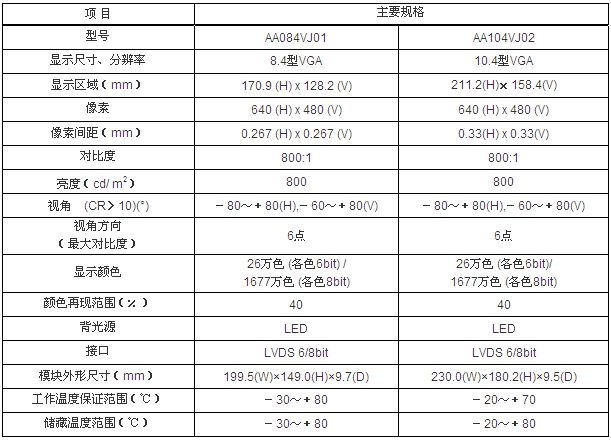 本公司為滿足上述需求,本次特發(fā)售帶有LVDS接口,具有高亮度、高對(duì)比度、寬視角等特點(diǎn)的8.4型、10.4型VGA液晶模塊。