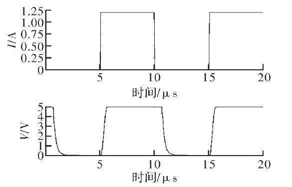 圖6為外接電流源在0~1.2 A之間跳變時(shí)采樣電路輸出電壓的波形。圖中輸出電壓范圍為0~5 V,為整顆芯片設(shè)計(jì)過流保護(hù)、開路保護(hù)等其他電路提供了方便。