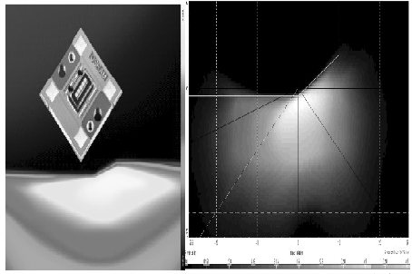 近年來,高亮度LED 技術(shù)發(fā)展迅猛。截至2008年,歐司朗光電半導(dǎo)體公司推出新款OSTARHeadlamp LED,OSTAR Headlamp LED 產(chǎn)生的光通量,依照串聯(lián)的芯片數(shù)量而定, 介于700mA 時(shí)的125 lm ( 單芯片) 與1A 時(shí)的1000 lm ( 五芯片) 之間,可達(dá)到前照燈需要的亮度要求。高精度的工程設(shè)計(jì)、內(nèi)置光閘功能、最佳的芯片安裝和封裝設(shè)計(jì),讓OSTAR Headlamp LED 具有全新的亮度數(shù)據(jù)和精確的燈光明暗截止線,適用于所有前照燈設(shè)計(jì)( 見圖7)。