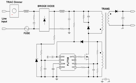(1)帶有功率因數(shù)校正、TRIAC和模擬調(diào)光能力的FL7730