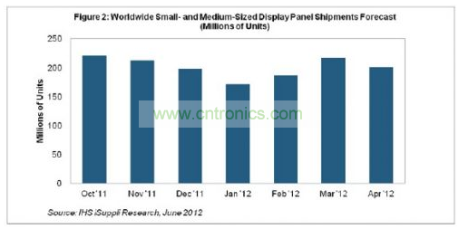 據(jù)IHS iSuppli公司的中小顯示器(SMD)價格追蹤報告,繼第一季度表現(xiàn)疲軟之后,4月SMD出貨量繼續(xù)下降,主要是因為制造商的需求低迷以及技術轉換所致。這類顯示器主要用于智能手機、平板電腦和數(shù)碼相機等設備。