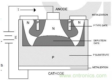 當(dāng)一個反向偏壓加到PN結(jié)的陰極和陽極時,這個恒流二極管開始導(dǎo)通,當(dāng)反向偏壓增加到VL時(見圖2),其電流由于N區(qū)的體電阻也跟著增加,當(dāng)電流增加到 曲線的拐點(diǎn)時,在N區(qū)和P型柵之間形成一個耗盡層。這個耗盡層減小了N區(qū)中電流的路徑也就減慢了電流的增加速度。結(jié)果這個耗盡層遇到了P型柵于是就產(chǎn)生了 夾斷效應(yīng),這使得電流變成恒定而幾乎和所加電壓無關(guān),直到所加電壓達(dá)到一個擊穿點(diǎn)Vb。如果所加電壓反過來,那么就相當(dāng)于一個正向電壓加到一個PN結(jié),其 特性就和一個普通二極管加上正向電壓時一樣。