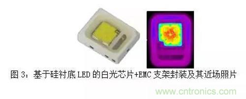 (3)垂直結構的芯片,不僅可以采用陶瓷封裝工藝,也可以采用更為廉價的支架封裝方式,進一步降低客戶的使用成本,如圖3所示,這為高品質照明提供了無限的可能。利用硅襯底LED芯片,可實現照明品質更佳、系統成本更低、設計方案更靈活、更具創(chuàng)新性的LED照明解決方案。
